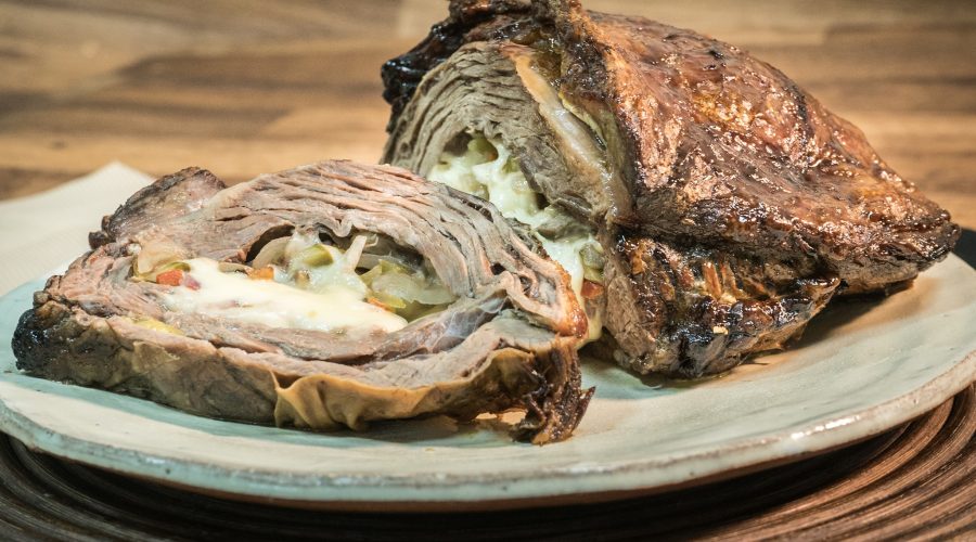 Vacío relleno con queso mozzarella y vegetales