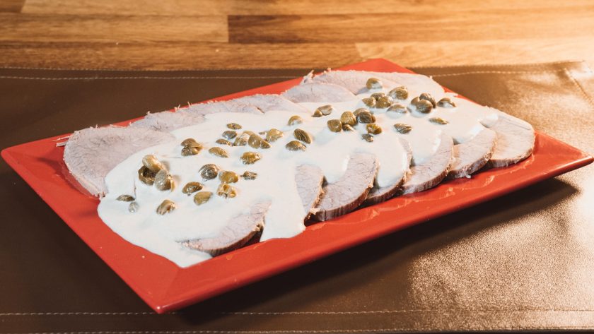 Un clásico plato italiano-argentino, combinando peceto tierno con una cremosa salsa de atún y alcaparras, ideal para ocasiones especiales.